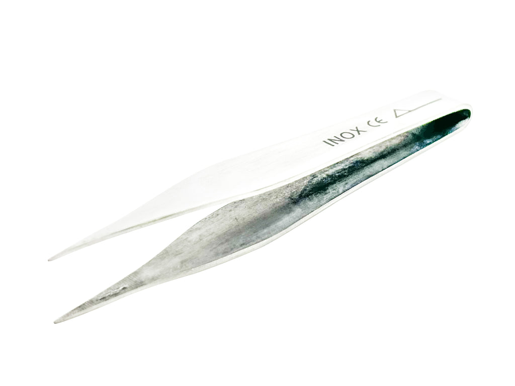 Pince à échardes simple. Instrument en acier inox, acier brillant.