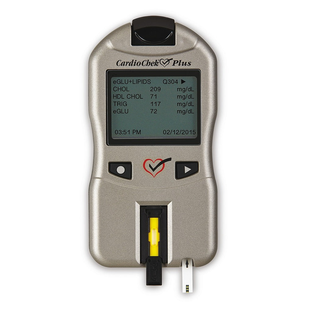 Plus qu'un simple lecteur de glycémie, l'analyseur sanguin CardioCheck Plus permet une analyse simultanée des glucides et des composantes du cholestérol.