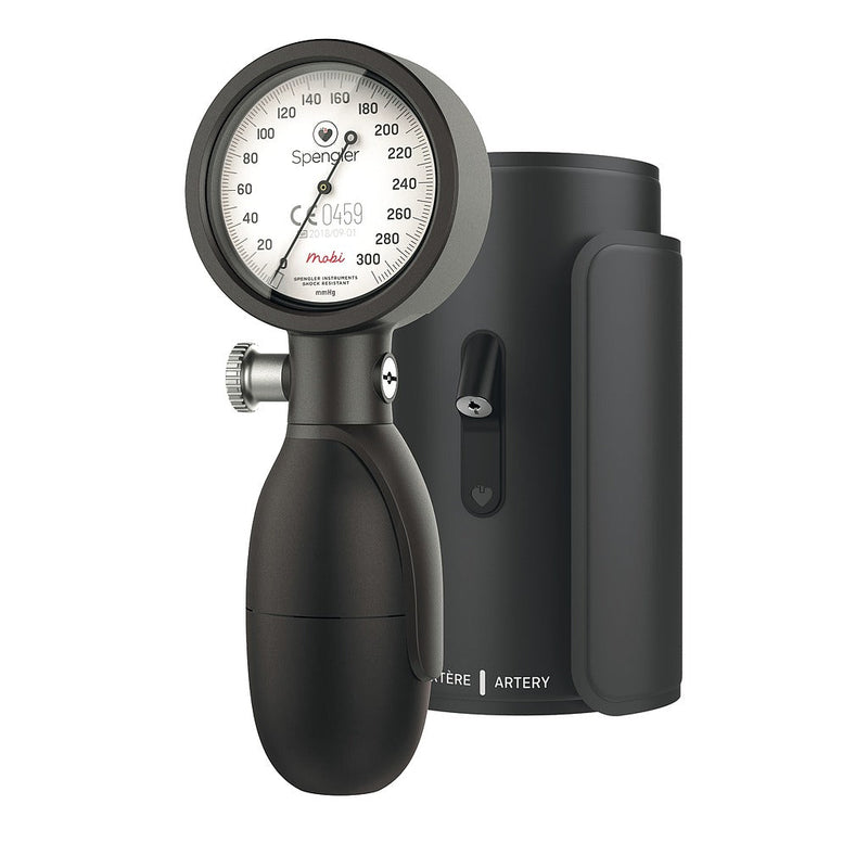 Tensiomètre manopoire ambidextre MobiLe tensiomètre anéroïde Mobi marque le retour de l'innovation Spengler.Cliquez ICI pour découvrir SUIVI HTA : l’application qui facilite l’automesure !• Changez de brassard en 1 secondeRapide et pratiqueAimantée en ses deux extrémités, la tubulure Life Link permet le changement de brassard en une seconde sans aucun effort. Grâce à la tubulure aimantée changez de brassard en un seul geste. Sa construction métallique offre un caractère robuste et une longévité à la connectique Life Link.• Un brassard bien roulé, bien enrouléLe nouveau design du brassard MOBI, laisse apparaitre l’index de taille. Ainsi vous voyez immédiatement et de façon très lisible si le brassard est adapté à votre patient. Livré avec un brassard taille M (25-34cm).• Une résistance à toute épreuveDoté de la technologie 3D Shield, une triple peau hermétique MADE IN SPENGLER.Equipé d'une double coque interne le protégeant des chocs du quotidien, d'une connectique pensée pour vous faciliter la vie, et d'une ergonomie efficace, le tensiomètre Mobi présente trois innovations brevetées.• Gauchers ou droitiersDroitier ou gaucher, vous pouvez inverser le sens de la valve de décompression en un geste simple et rapide• Il n'y a pas de mal à se faire plaisirPensé pour augmenter votre confort quotidien, la poire est pensée pour épouser parfaitement la géométrie de toutes les mains• STOP aux contaminations croiséesLe Brassards MOBI ont été testés par le Laboratoire ANIOS qui certifie l'usage des solutions de désinfection sans endommager le brassard. Indispensable en période de pandémie. Les + du Mobi en résumé :Connectique Life Link : tubulure Life Link et connecteur aimanté, innovation brevetée. Changer de brassard n'a jamais été aussi facile.Résistant aux chocs : double coque interne brevetée. De part sa fabrication en plastique ABS, Mobi est spécialement étudié pour offrir une grande résistance aux chocs et chutes du quotidien.Poire ergonomique : forme étudiée pour convenir à toutes les tailles de mains, et permettant d'économiser en moyenne deux pressions par prise de tension (gain de volume de 11% par rapport aux poires traditionnelles)Qualité des brassards : développé en revêtement TPU, les brassards Mobi offrent un poids plus léger et une grande facilité de nettoyage.Valve de précision : conçue pour offrir le maximum de précision et de confort au professionnel de santé. La valve est fabriquée en alliage métallique haute sensibilité.AmbidextreDesign épuré et moderne, haut niveau de finition