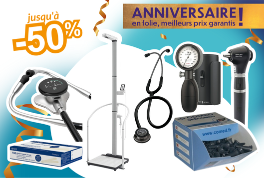 Stéthoscopes Littmann, otoscope Macroview, abaisse-langue, spéculums auriculaires, ECG, pèse-personne... en promotion Anniversaire !