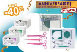 Sets d'intervention, sets de suture, set de pose de stérilet, sutures résorbables et non résorbables.. en promotion Anniversaire !