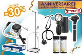 Stéthoscopes Littmann, otoscope Macroview, abaisse-langue, bandelettes urinaires , ECG, pèse-personne... en promotion Anniversaire !